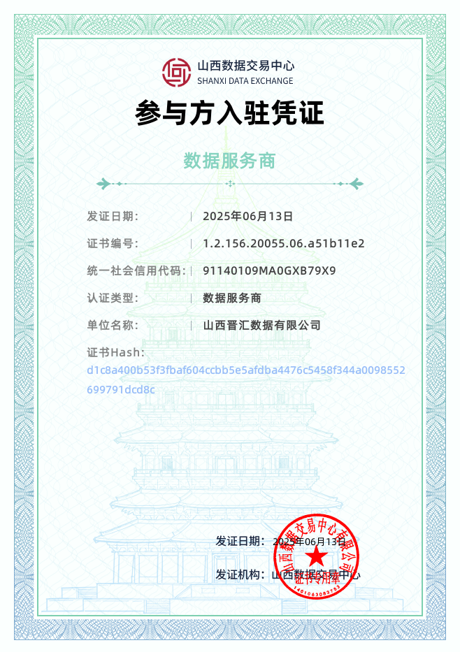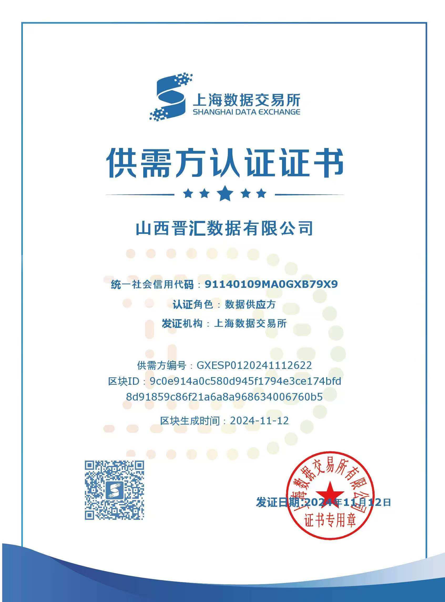 晋汇总公司成立于2016年,经过7年的行业深耕于2023年在上海成立晋汇智华运营中心,本着以数据要素市场推动数据资产化进程为使命,赋能数据资产开放流通,服务全国范围内国企、央企、投资集团、上市企业、及行业板块企业,是提供数据资产流程落地及资产入表等全流程服务的专业数商公司。